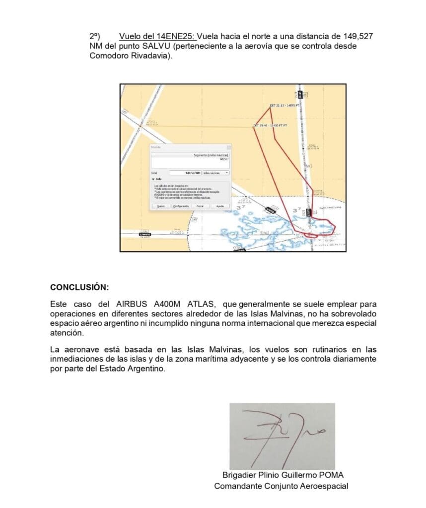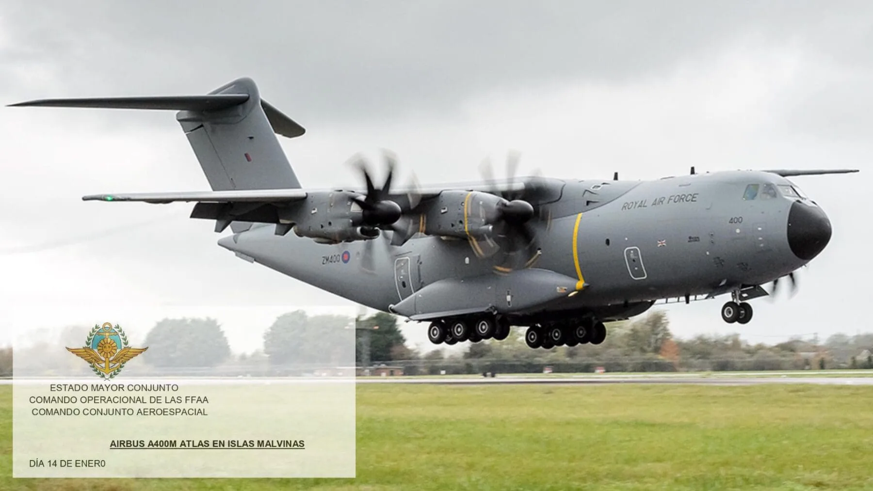 El Estado Mayor Conjunto (EMCO) de las Fuerzas Armadas de Argentina emitió recientemente un informe para aclarar cuestiones relacionadas con los acontecimientos ocurridos la semana pasada, donde un avión del Reino Unido en las Islas Malvinas se aproximó a vuelos comerciales argentinos. El 14 de enero se detectó, a través de aplicaciones de seguimiento, que un avión Airbus 400M Atlas británico despegó de las Islas Malvinas y tuvo aproximaciones cercanas a vuelos comerciales argentinos, donde el Airbus apagó el transpondedor o comenzó a volar a menor altitud, sin dejar registrado sus siguientes movimientos.