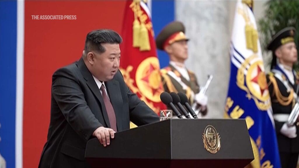 Kim Jong Un durante su discurso el pasado sábado. Créditos: AP