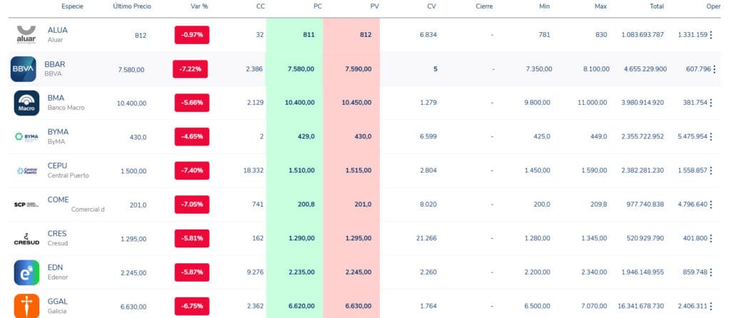 En la primera jornada bursátil posterior a la controversia de $LIBRA, el índice S&P Merval registró una baja cercana al 4%, mientras que los bonos en dólares también sufrieron caídas superiores al 4%, según datos del sector financiero. Entre las acciones más afectadas, BBAR encabezó las pérdidas con un descenso del 10%, seguida por Grupo Financiero Galicia (-9%) y Edenor (-8%). En el segmento de bonos en dólares, las mayores bajas estuvieron lideradas por el Bonar 2035, que retrocedió un 4,1%, el Bonar 2041 con una merma cercana al 4% y el Global 2038, que cayó un 3,5%.