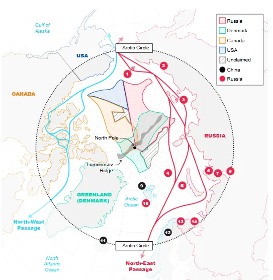 El Ártico es una región estratégica que alberga vastos recursos naturales, incluidos combustibles fósiles y minerales, cuyo acceso podría facilitarse con el deshielo provocado por el cambio climático, siendo por esto que Rusia ha avanzado en la modernización de sus bases militares en la región y en el despliegue de tecnología naval avanzada, superando la presencia de Occidente en el área.