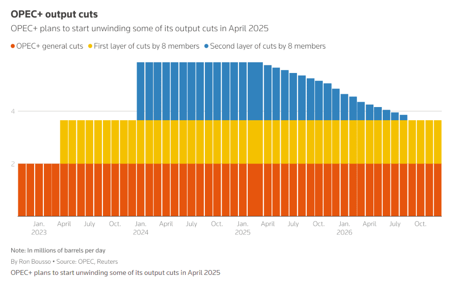 El comunicado oficial justificó la decisión con “fundamentos saludables del mercado y perspectivas positivas”, pero el momento elegido resultó contraproducente, coincidiendo con una caída pronunciada del precio del petróleo, impulsada por temores de una guerra comercial global tras la imposición de nuevos aranceles por parte del gobierno de Donald Trump y las medidas de represalia de China.