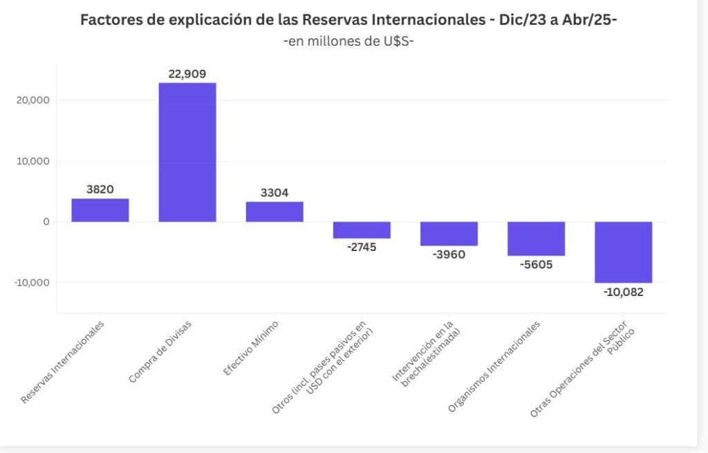 Algunos economistas locales anticiparon a Escenario Mundial que el régimen actual de tipo de cambio “tiene los días contados”, aunque otros proyectan una posible absorción de pesos a través de un nuevo BOPREAL para el giro de dividendos al extranjero, lo que, combinado con los desembolsos multilaterales —que incluirían aportes del Banco Mundial, el BID y la CAF—, permitiría acumular entre US$15.000 y US$25.000 millones, reduciendo así el tipo de cambio implícito entre reservas y base monetaria amplia.