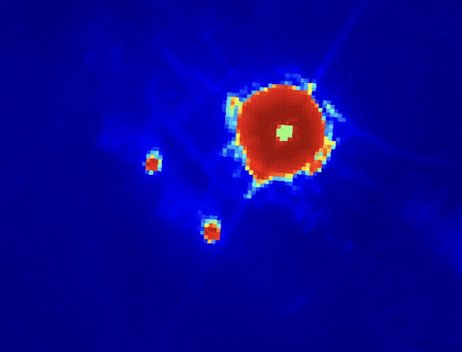 Imagen satelital del 14 de abril de 2025 que muestra la quema de gas continua en Arctic LNG 2, tanto del Tren 1 como del Tren 2, así como de la antorcha principal. Fuente: Sentinel 2.