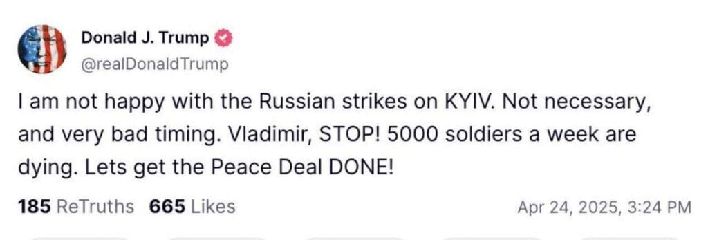 Donald Trump endureció su retórica contra Zelenski, acusándolo de dificultar las negociaciones y calificándolo de “difícil de tratar”, al tiempo que lanzó un inusual llamado público a Putin para cesar los ataques. “¡Vladímir, ALTO! Mueren 5000 soldados a la semana. ¡Logremos el acuerdo de paz!”, escribió en Truth Social.