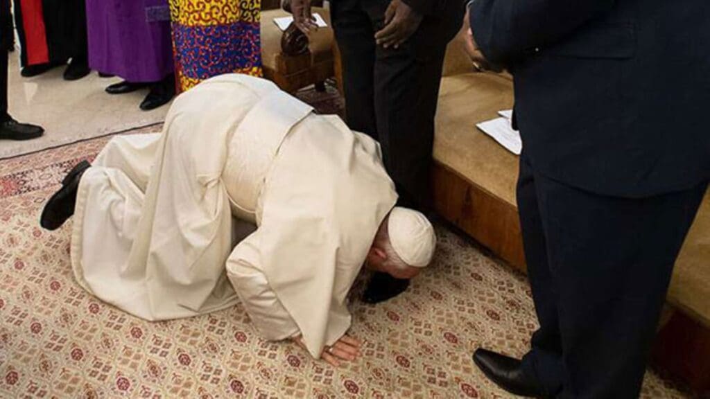 Durante su papado, Francisco visitó 10 países de África, consolidando el vínculo del Vaticano con los católicos en dicho continente. Los países elegidos, usualmente Estados en guerra o con conflictos civiles, fueron escenario de misas masivas en barrios carenciados y encuentros con líderes políticos. En un gesto de humildad sin precedentes, Francisco besó los pies de uno de los líderes de Sudán del Sur, con el fin de interceder en nombre de la Iglesia Católica para contener la violencia del conflicto.