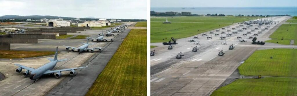 La maniobra formó parte de una demostración de capacidad más amplia en la que se exhibió el poderío aéreo militar estadounidense, en un contexto regional marcado por la creciente presencia militar de China y la necesidad desde Washington de disuadir las crecientes tensiones en el Indo-Pacífico. En este contexto, aviones de combate, helicópteros de rescate y aviones espía recorrieron la pista de la base junto a sistemas de defensa antimisiles Patriot.