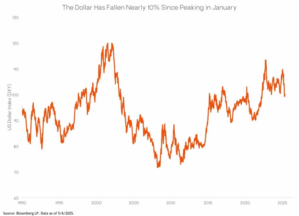 La moneda estadounidense se depreció un 8% frente al euro en lo que va del año, una tendencia que el informe atribuye a una serie de factores asociados al actual enfoque de la Casa Blanca.