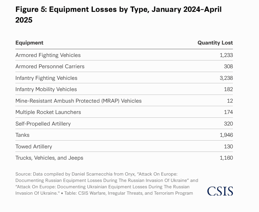 El esfuerzo ofensivo de Moscú ha resultado también en una significativa pérdida de equipamiento militar. Desde enero de 2024, Rusia ha perdido más de 1.800 tanques, 3.000 vehículos de infantería y numerosos sistemas de artillería y aeronaves.