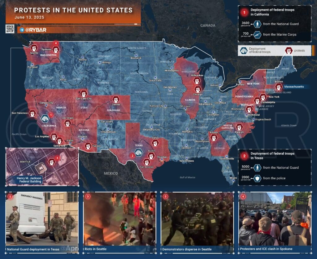 Las protestas contra las redadas migratorias y la militarización de la seguridad interna en Estados Unidos se expandió rápidamente en los últimos días, alcanzando ciudades como Nueva York, Chicago, San Antonio y Salt Lake City. Esta última fue escenario de una masiva concentración frente al Ayuntamiento, rememorando los disturbios de 2020. El epicentro del descontento sigue siendo el condado de Los Ángeles, donde las acciones del gobierno federal provocaron un recrudecimiento del conflicto político y social.