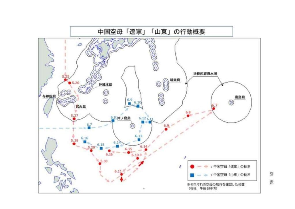 El Estado Mayor Conjunto de Japón emitió un comunicado en el que confirmó la presencia de portaaviones de la Armada de China, incluidos los portaaviones Liaoning y Shandong, que realizaron operaciones en aguas del Océano Pacífico entre el 8 y el 16 de junio. Las autoridades japonesas informaron que ambas embarcaciones llevaron a cabo despegues y aterrizajes de aeronaves durante ese período, como parte de ejercicios navales que se desarrollaron cerca de zonas sensibles como Iwo Jima, Okinotorishima y la isla de Miyako.