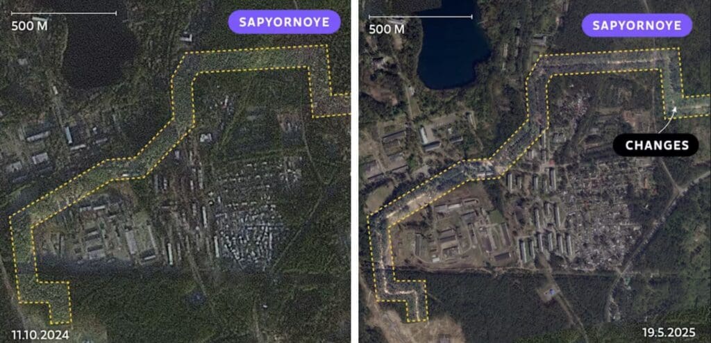 Situación similar ocurre en el istmo de Carelia, puntualmente en la guarnición de Sapyornoye a unos 70 kilómetros de la frontera finlandesa. Su actividad era limitada, y ahora las imágenes muestran que se ha despejado territorio probablemente para un gasoducto, además de que recibió equipo militar. La variedad de equipos apunta a tropas de ingenieros, aunque los cambios pueden estar relacionados con la guarnición más grande de Kamenka, a unos 50 kilómetros al suroeste de Sapyornoye.
