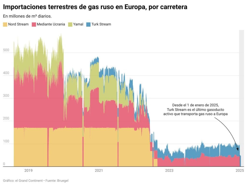 Los acuerdos a corto plazo ya vigentes deberán cesar dentro de un año, mientras que los contratos a largo plazo quedarán sin efecto a fines de 2027. La propuesta también impide que empresas rusas firmen nuevos contratos de uso de terminales de GNL en la UE, medida que busca liberar capacidad para proveedores alternativos.