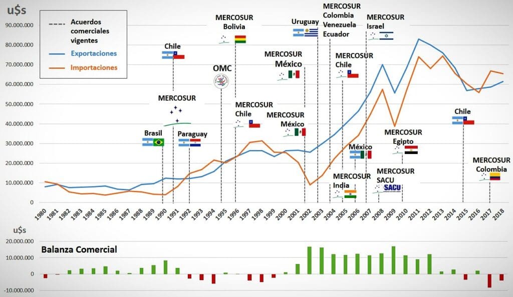 Durante el período 1930-2015, los sucesivos gobiernos apostaron en menor o mayor medida por la “industrialización por sustitución de importaciones” (ISI) buscando la autosuficiencia industrial. Esta estrategia, en lugar de catapultar al país hacia el desarrollo, terminó desvirtuando sus ventajas comparativas: se protegió a industrias ineficientes a través de una sistemática desviación de la inversión del sector agroexportador (tradicional motor de la economía), que sufrió una caída pronunciada en su producción.