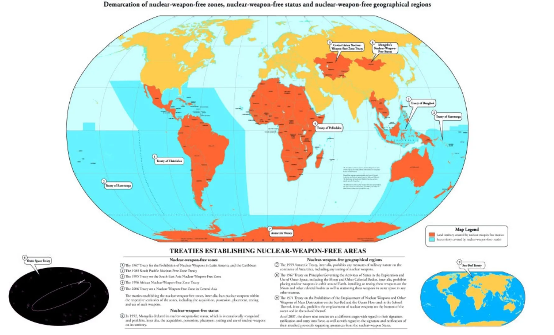 Así como existe la zona libre de armas nucleares del Sudeste Asiático, la misma iniciativa, o similar, fue impulsada en otras cuatro regiones del mundo: América Latina y el Caribe, el Pacífico Sur, África y Asia Central. El objetivo de estos espacios es promover la no proliferación a nivel internacional y consolidar los esfuerzos internacionales por la paz y la seguridad.