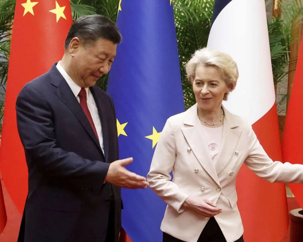 Presidente chino, Xi Jinping (izquierda) junto a Úrusula von der Leyen, presidenta de la Comisión Europea (derecha). Créditos: AP/Ludovic Marin