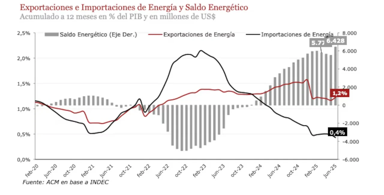 Argentina registró un superávit comercial energético de 3.761 millones de dólares durante el primer semestre de 2025, el más alto en más de tres décadas. Este saldo positivo se explica principalmente por el crecimiento de la producción no convencional en Vaca Muerta y por la puesta en marcha de nuevas obras de infraestructura que dinamizaron las exportaciones y redujeron la necesidad de importaciones energéticas.