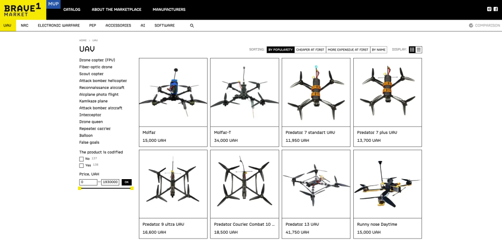 Con la expansión del sistema, el canje de puntos dejó de hacerse en efectivo y se canaliza ahora a través del Brave 1 Market, una plataforma que funciona como un “Amazon de la guerra”. Allí los soldados pueden adquirir más de 1.600 productos directamente de los fabricantes: drones, componentes, vehículos terrestres no tripulados (UGV), entre otros. El Ministerio de Defensa asume luego el pago.