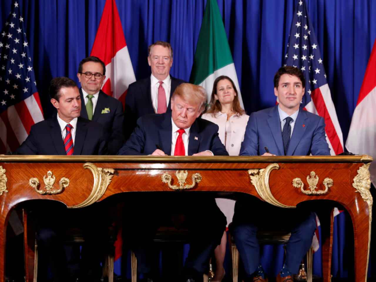 El presidente de Estados Unidos, Donald Trump, el primer ministro de Canadá, Justin Trudeau, y el presidente de México, Enrique Peña Nieto, asisten a la ceremonia de firma del USMCA antes de la cumbre de líderes del G20 en Buenos Aires, Argentina, 30 de noviembre de 2018. Creditos: Kevin Lamarque / Reuters