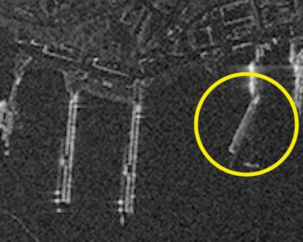Imagen satelital de la base de Rybachiy, en Kamchatka, muestra un muelle desviado de su posición original. Créditos: Umbra