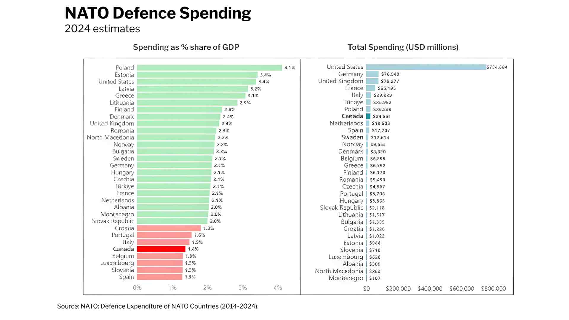 Con esta inyección, el gasto en defensa de Canadá alcanzará aproximadamente el 2% del PIB, el umbral establecido por la OTAN para sus Estados miembros. Créditos: OTAN.