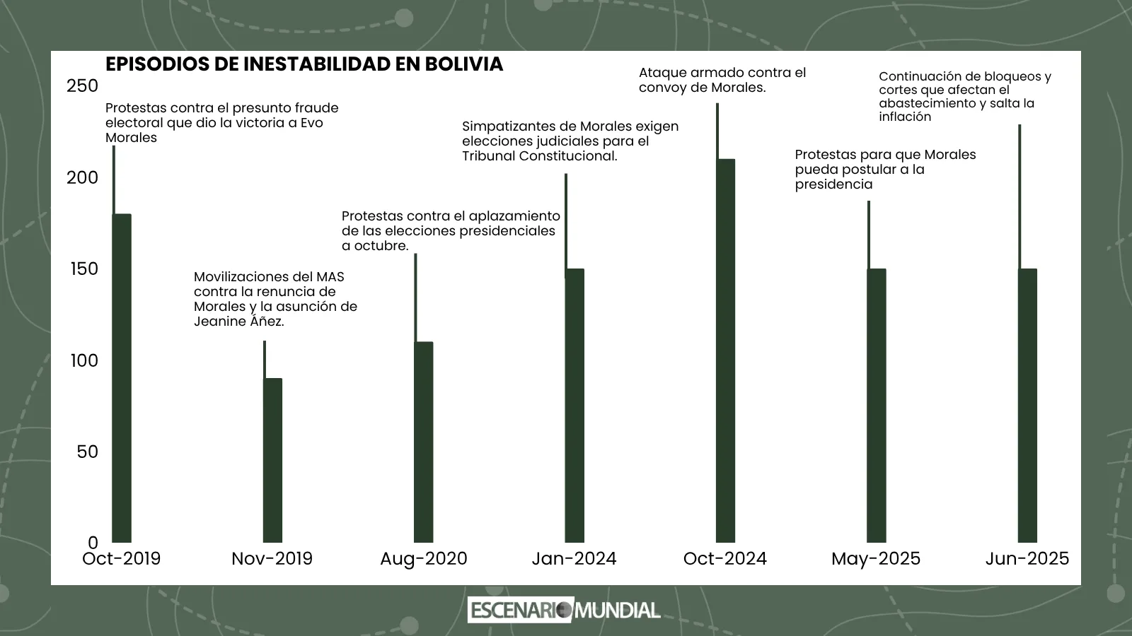En 2024, el regreso de Evo Morales al país estuvo marcado por un episodio de alto voltaje: un ataque armado contra su convoy, que responsabilizó al gobierno de Luis Arce. El hecho desató protestas, bloqueos y enfrentamientos con la policía. Y en mayo y junio de 2025, las bases del MAS paralizaron rutas y ciudades con el pedido de que Morales pudiera postularse. Los cortes interrumpieron el abastecimiento de combustibles y alimentos, disparando la inflación mensual por encima del 5%.