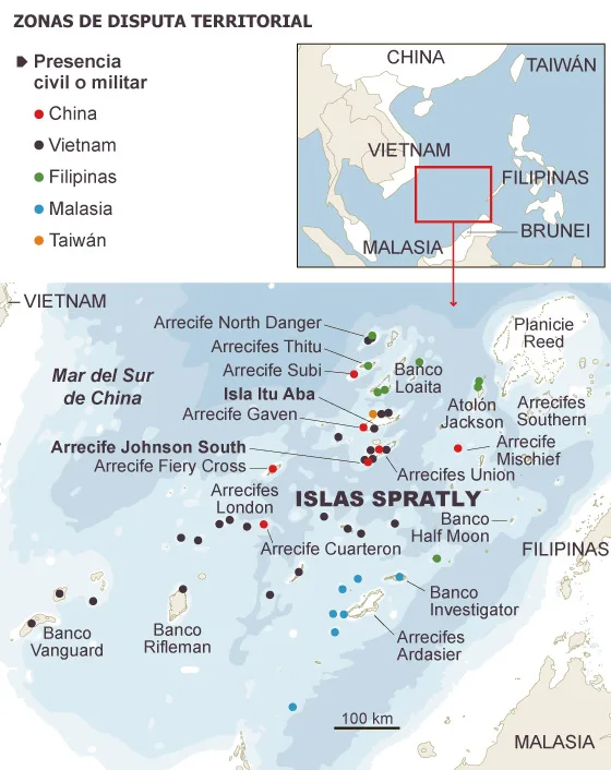 El Mar de China Meridional es una de las rutas marítimas más estratégicas del mundo y su archipiélago de Spratly es objeto de múltiples reclamaciones. Además de China y Vietnam, Taiwán, Filipinas, Malasia y Brunei mantienen derechos sobre distintas islas y arrecifes. La competencia se intensificó en la última década, a medida que Pekín transformó bancos de arena en bases fortificadas con pistas de gran tamaño en Fiery Cross, Mischief y Subi Reef.