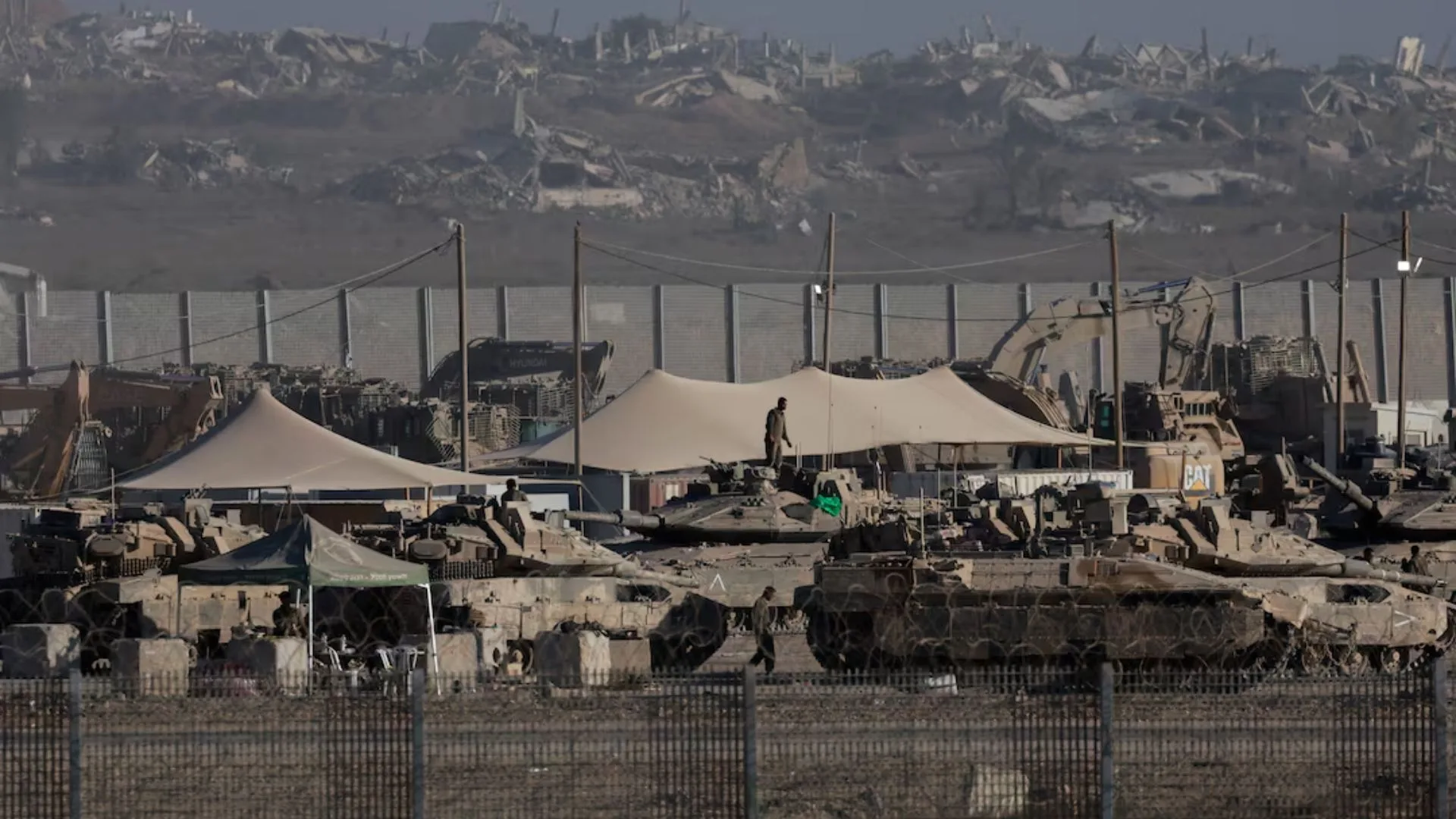 Personal de las Fuerzas de Defensa de Israel se reúnen cerca de vehículos militares y maquinaria pesada, a lo largo de la frontera con Gaza, visto desde el lado israelí, 3 de septiembre de 2025. REUTERS/Ammar Awad
