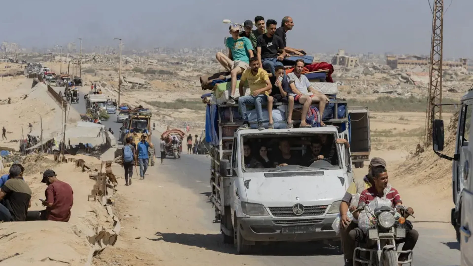 Personas huyendo de la ciudad de Gaza el miércoles. Crédito… Saher Alghorra para The New York Times