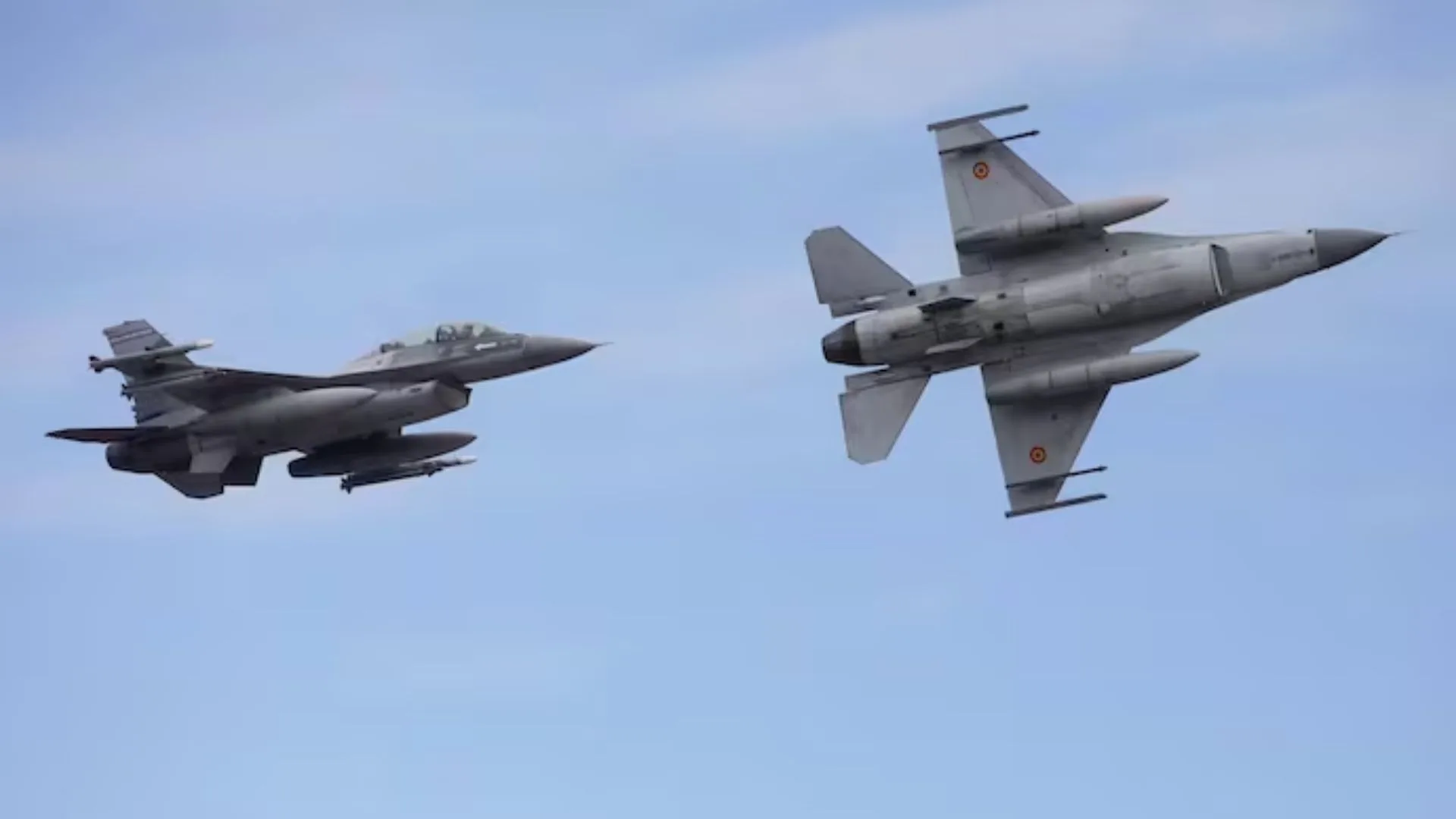 Dos F-16 de la Fuerza Aérea Rumana realizan sobrevuelos durante un evento en 2023. (Foto: Reuters/Archivo)