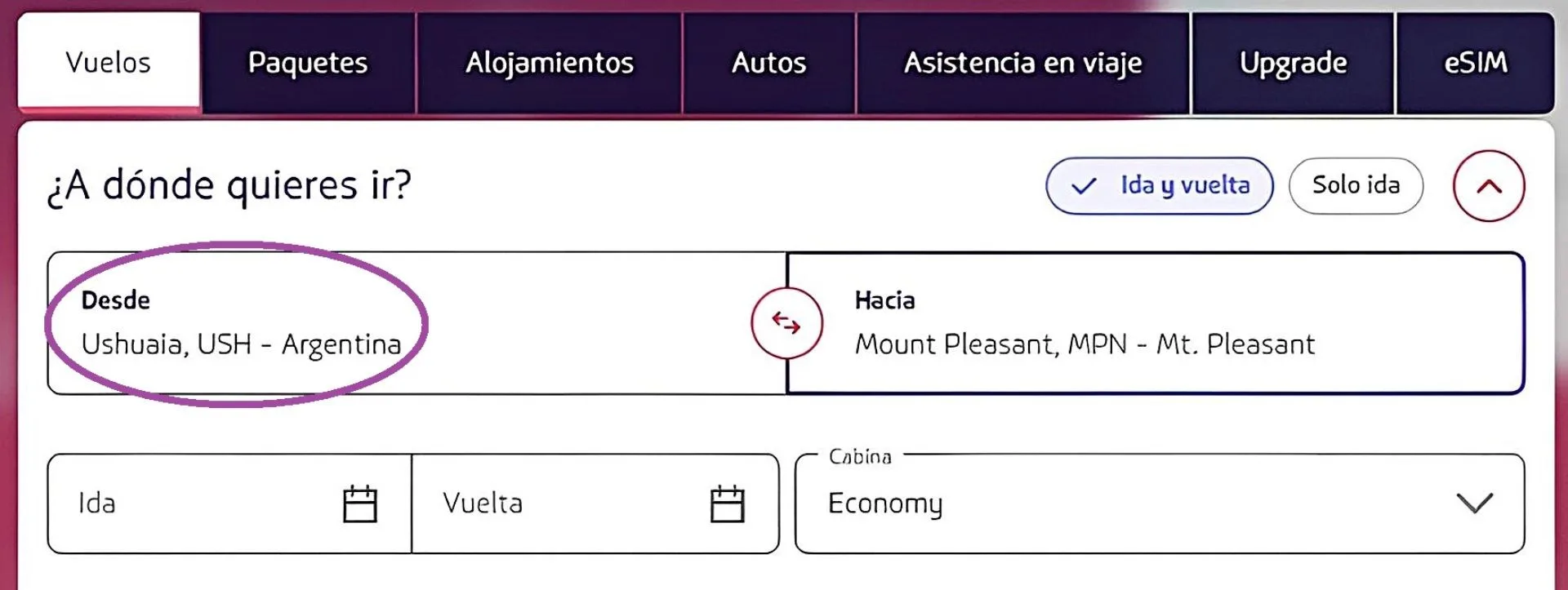 Se trata del vuelo de la aerolínea Latam que une Punta Arenas con las Islas Malvinas, con escala en Ushuaia. Según reportó el medio de comunicación Agenda Malvinas, esta situación comenzó como un simple cambio de ruta por reparaciones en el aeropuerto de Río Gallegos. No obstante, actualmente se ha convertido en una cesión a las exigencias del gobierno colonial británico, que logró hasta el momento evitar cualquier vínculo explícito de la ruta con la reivindicación argentina sobre las islas.