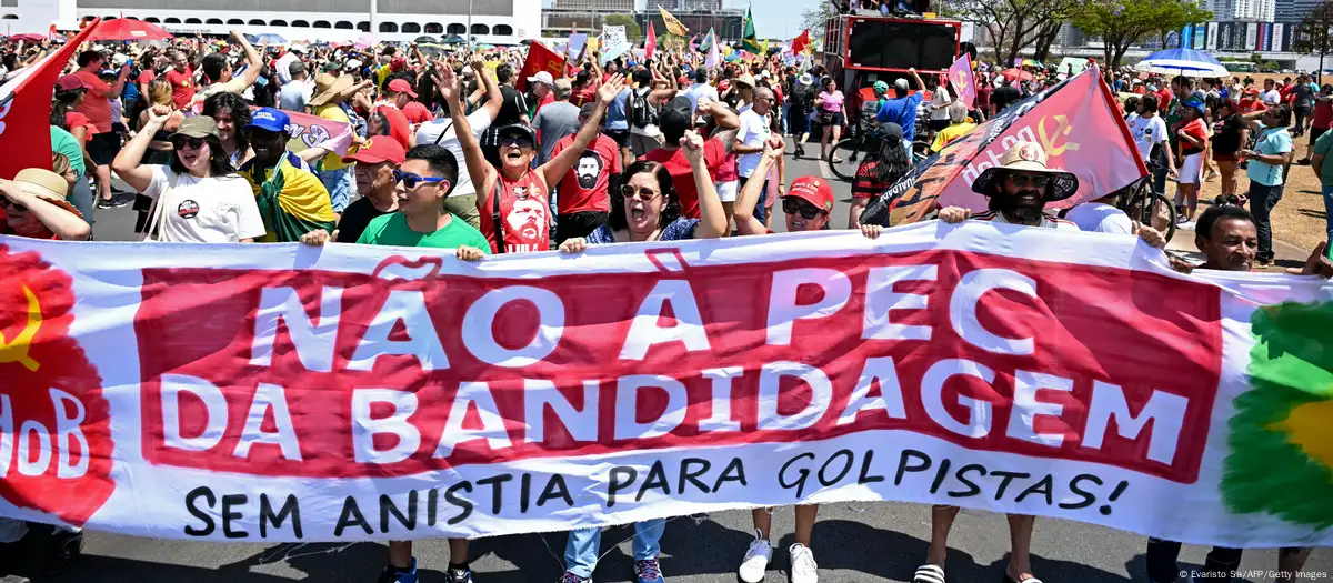 Miles de manifestantes salieron a las calles el domingo 21 de septiembre en más de 30 ciudades de Brasil para protestar contra dos proyectos legislativos que, según afirman, amenazan la rendición de cuentas democrática. Estos proyectos son una propuesta de amnistía que podría beneficiar al expresidente Jair Bolsonaro, condenado recientemente, y una enmienda constitucional (el llamado “Proyecto Blindaje”) que amplía la inmunidad de legisladores ante acusaciones penales.