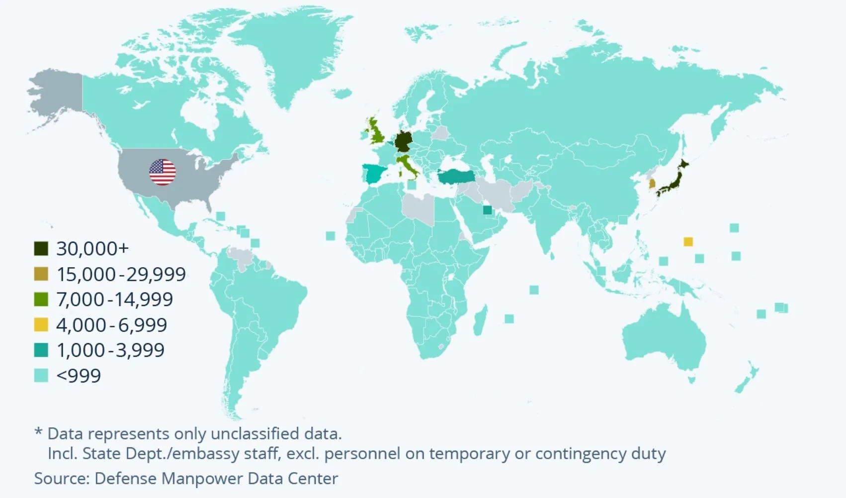 Dónde están desplegadas las tropas estadounidenses en el mundo. Tropas estadounidenses activas desplegadas fuera de los Estados Unidos contiguos a junio de 2024. Créditos: Statista