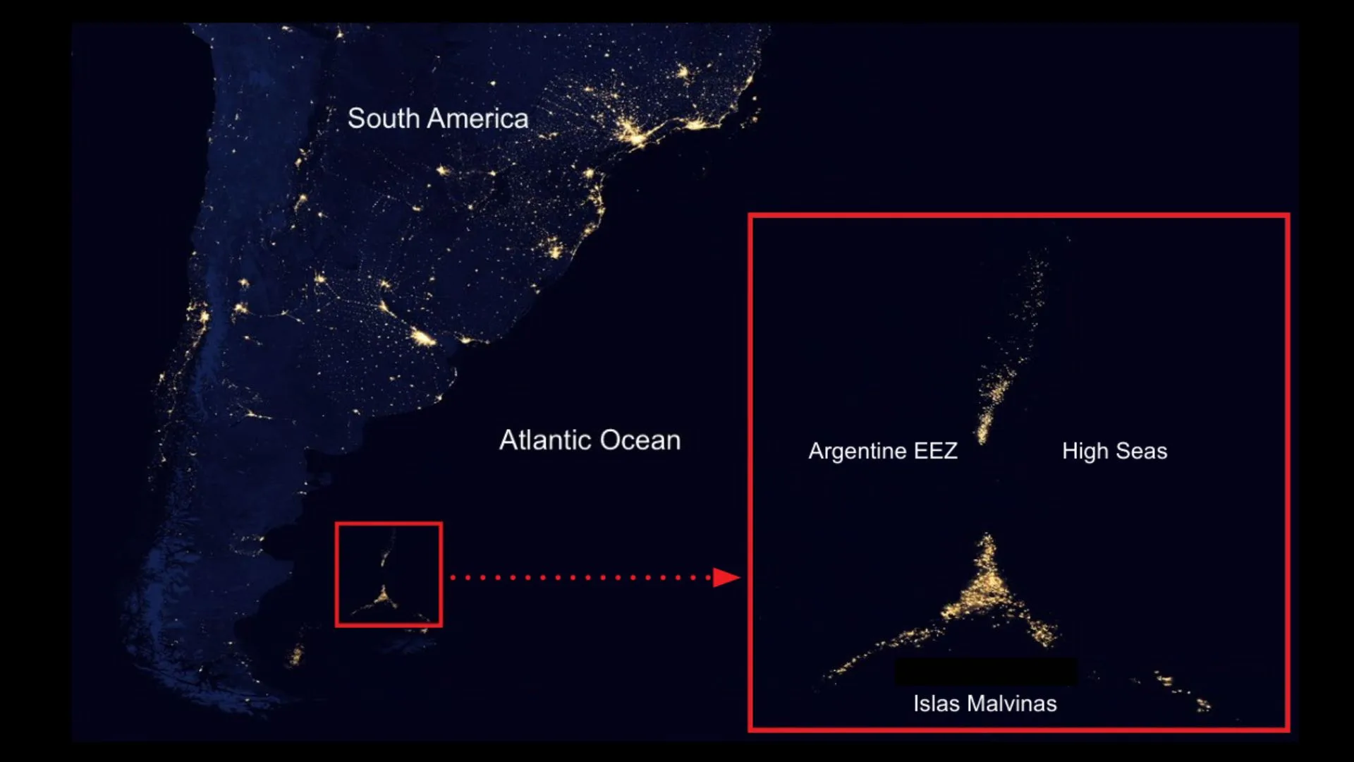 El calamar de aleta corta del Atlántico suroccidental es el centro de una de las mayores pesquerías no reguladas del mundo, donde la Zona Económica Exclusiva de la Argentina (ZEEA) es protagonista. Cada año, cientos de embarcaciones de aguas distantes se concentran en la llamada “milla 201”, justo más allá de la ZEEA, para interceptar a la especie en su migración hacia zonas de alimentación en alta mar, siendo una flota tan numerosa que sus luces pueden observarse desde el espacio.