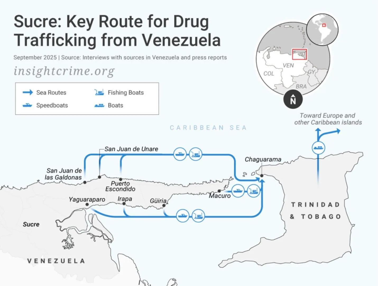 El bote atacado habría salido de Arismendi, municipio ubicado a tan solo 80 kilómetros de Trinidad y Tobago, uno de los corredores clave para el tráfico de drogas, armas y migrantes en la región. Habitantes de poblaciones costeras como Valdez, Mariño o Cajigal reconocen que es habitual ver embarcaciones cargadas con cocaína o contrabando antes de cruzar hacia el Caribe.