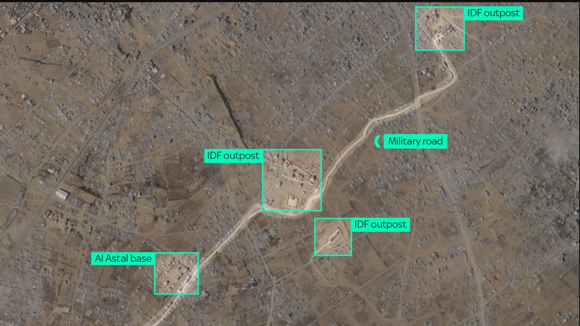 Las milicias reciben suministros, munición y vehículos a través de los cruces fronterizos de Kerem Shalom y Erez, bajo supervisión israelí. Sky News verificó imágenes satelitales y videos que muestran camiones con cargamentos entrando a sus bases, algunos de ellos con inscripciones en hebreo parcialmente borradas.