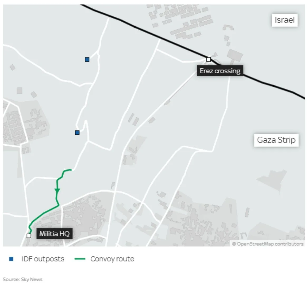 Las milicias reciben suministros, munición y vehículos a través de los cruces fronterizos de Kerem Shalom y Erez, bajo supervisión israelí. Sky News verificó imágenes satelitales y videos que muestran camiones con cargamentos entrando a sus bases, algunos de ellos con inscripciones en hebreo parcialmente borradas.