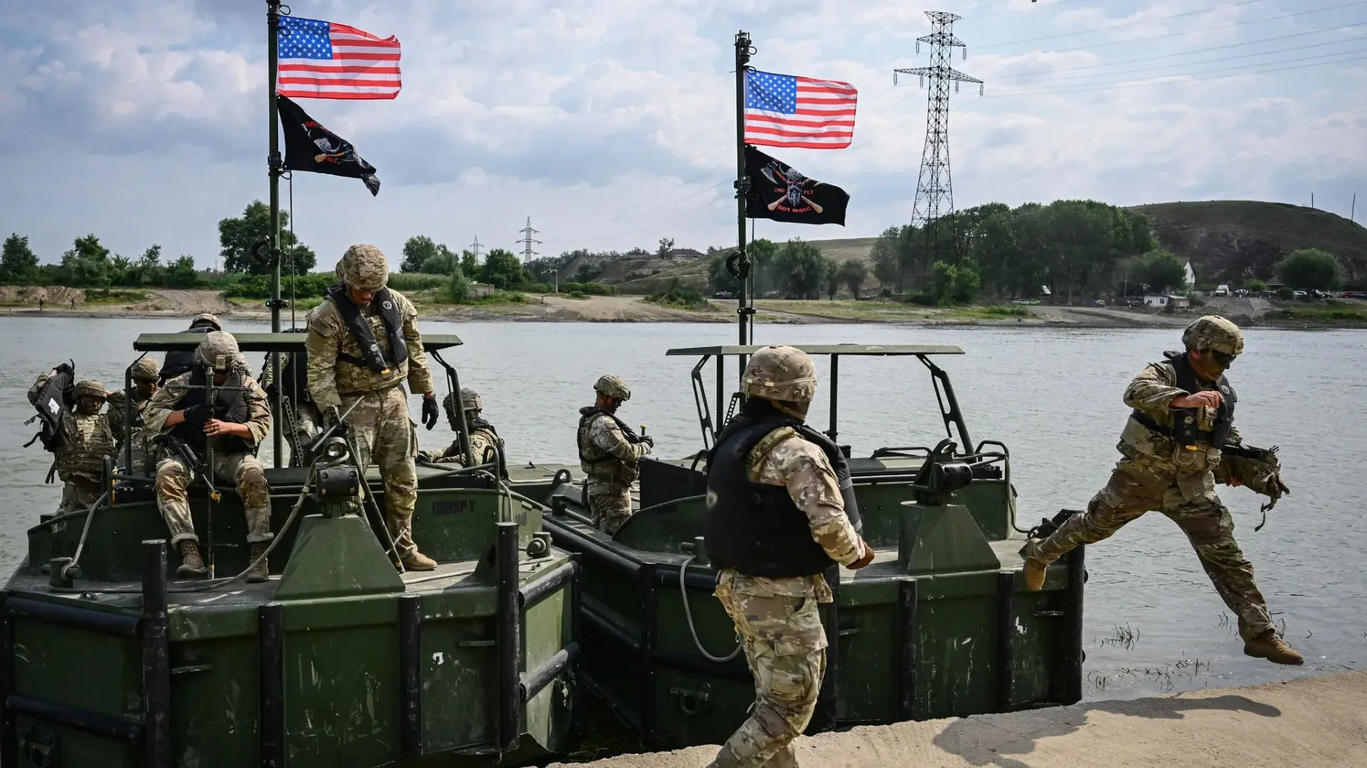 Soldados estadounidenses manejan embarcaciones a través del río Danubio durante unas maniobras militares en Frecatei, Rumanía, en junio. (Daniel Mihailescu/AFP/Getty Images)