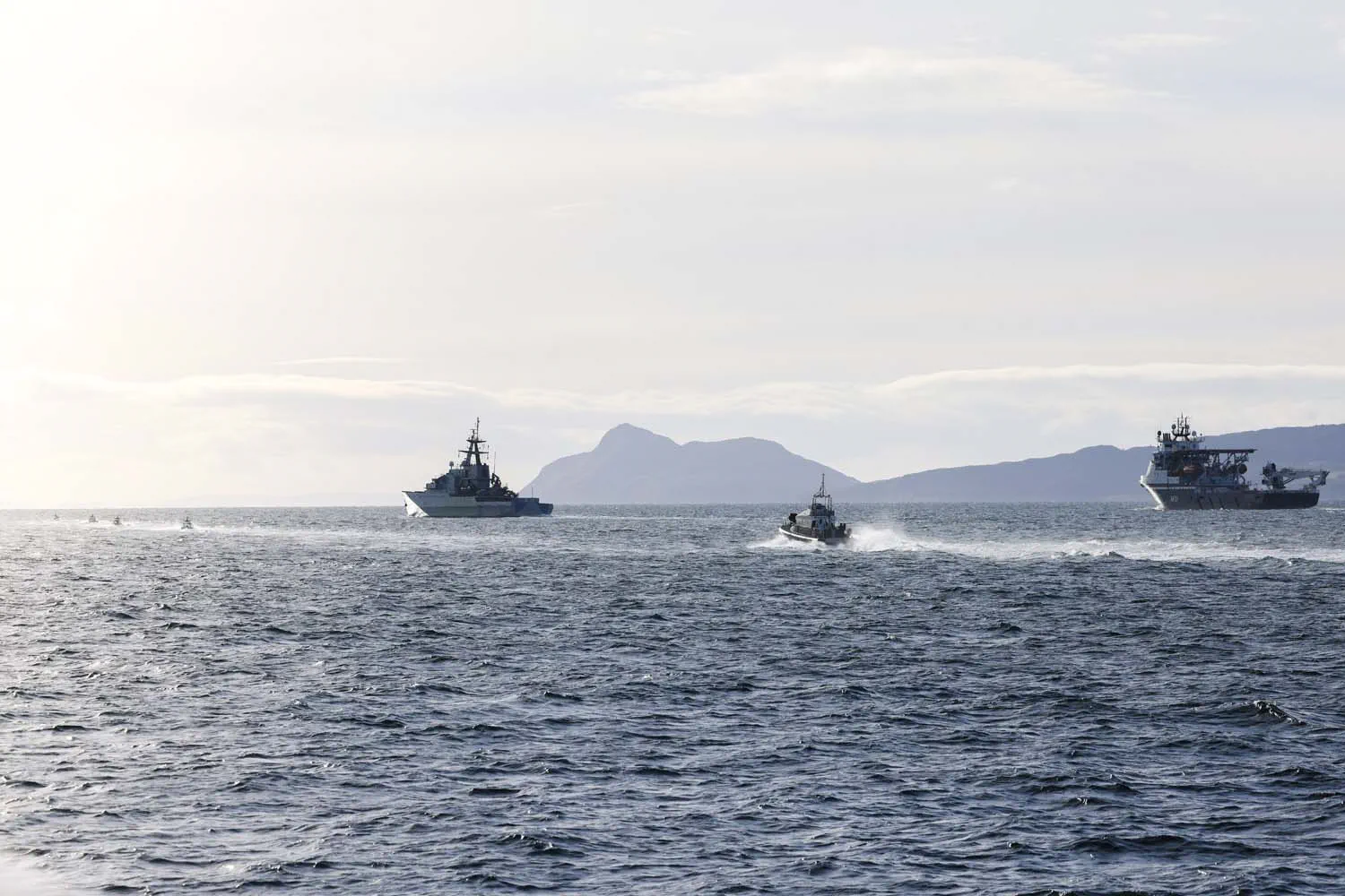 Cinco barcos no tripulados, pilotados de forma remota desde 500 millas de distancia, rodearon al HMS Tyne en una demostración de cómo la Royal Navy podría utilizar esta tecnología en operaciones. Foto: LPhot Daniel Bladen