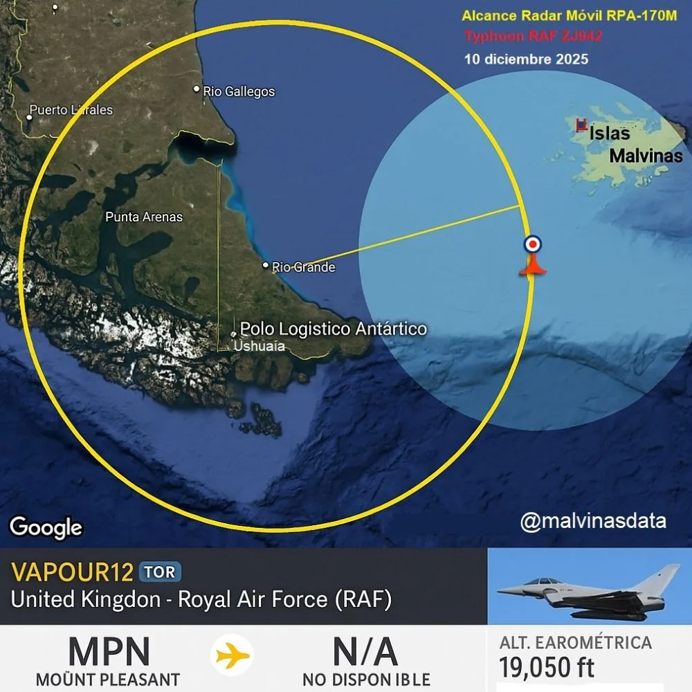 El endurecimiento del discurso se produce, además, en un contexto de mayor actividad militar británica en el Atlántico Sur. En los últimos días, uno de los caza Typhoon de la RAF desplegados en la base de Mount Pleasant en Malvinas voló con el transponder encendido en el límite del alcance del radar móvil de Río Grande, dentro de aguas de la Zona Económica Exclusiva Argentina. Para analistas de defensa, ese tipo de vuelos —visibles en plataformas abiertas como Flightradar— operan como un recordatorio de la presencia militar británica en la zona y se enlazan con la dimensión estratégica de los proyectos petroleros offshore.