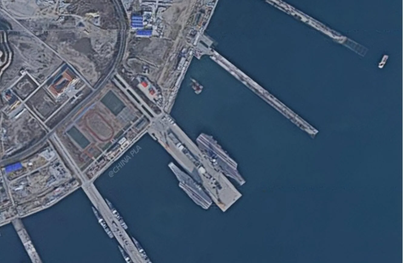 Imágenes satelitales de los portaaviones Fujian CV-18 y Liaoning CV-16 juntos en puerto. 30 de diciembre. Créditos: CHINAPLA vía X