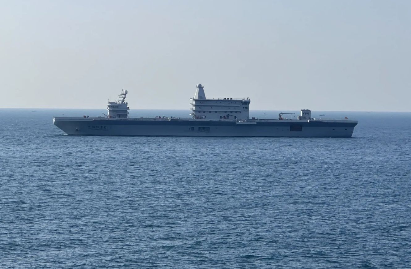 Tal como expuso Escenario Mundial, el buque llamó la atención por su silueta: una amplia cubierta de vuelo y un diseño atípico con múltiples superestructuras tipo “isla”, un rasgo poco frecuente que alimentó hipótesis sobre separación de funciones a bordo (control de vuelo, puente y escapes) y sobre su potencial como banco de pruebas para operaciones aéreas. En reportes previos, se lo ubicó asociado a instalaciones industriales vinculadas al conglomerado estatal chino de construcción naval, en un ecosistema que tradicionalmente combina desarrollos comerciales con transferencia tecnológica hacia capacidades de defensa.