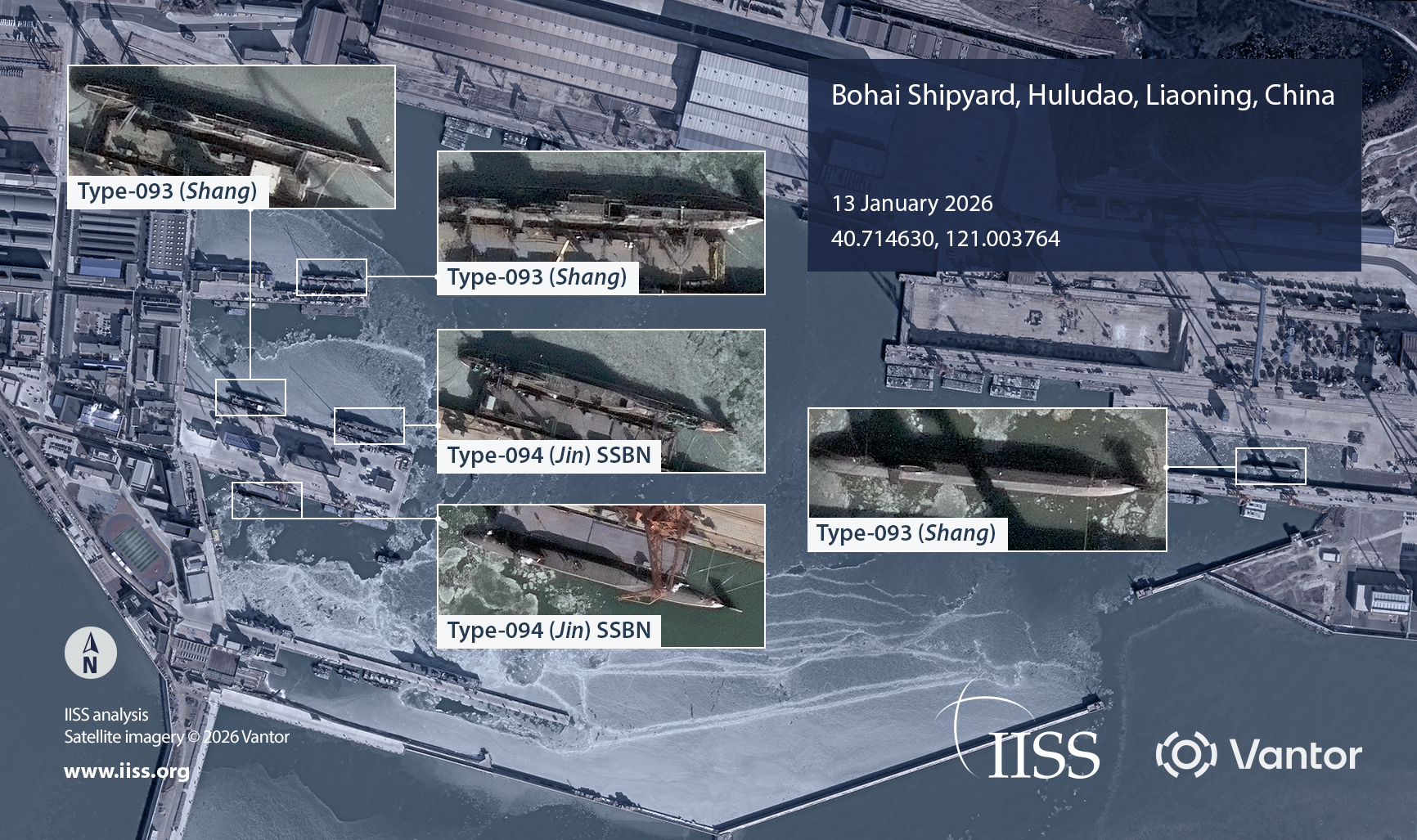 China incrementó significativamente su producción de submarinos nucleares en el período 2021–2025, superando por primera vez a Estados Unidos tanto en número de botaduras como en tonelaje combinado, según un análisis publicado por el International Institute for Strategic Studies (IISS) en su Military Balance Blog.