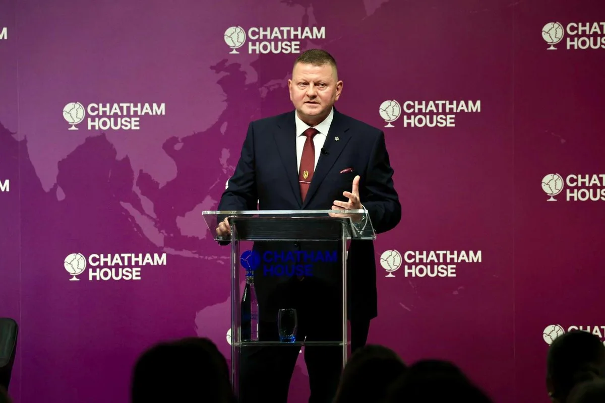 Valeriy Zaluzhny, embajador de Ucrania en el Reino Unido y ex comandante en jefe de las Fuerzas Armadas ucranianas, durante su intervención en Chatham House el 23 de febrero, en el marco del cuarto aniversario de la invasión a gran escala lanzada por Rusia/ Créditos: The Royal Institute of International Affairs - Chatham House.