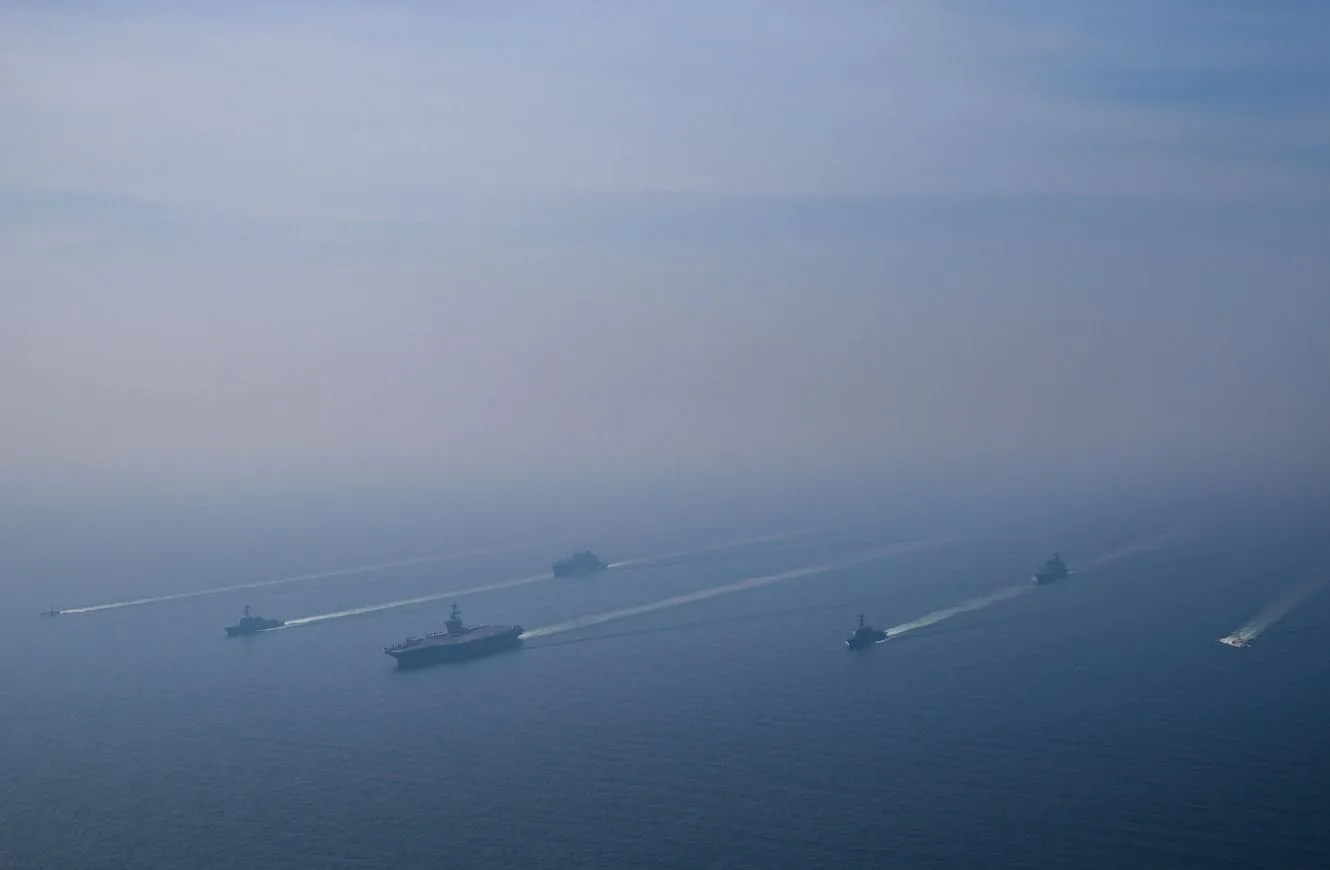 La primera capa está compuesta por los propios cazas embarcados, como el F-35C Lightning II o el F/A-18E/F Super Hornet, que patrullan el espacio aéreo alrededor del grupo de ataque. Estas aeronaves pueden interceptar amenazas a cientos de kilómetros del portaaviones, reduciendo significativamente el riesgo de un ataque directo.